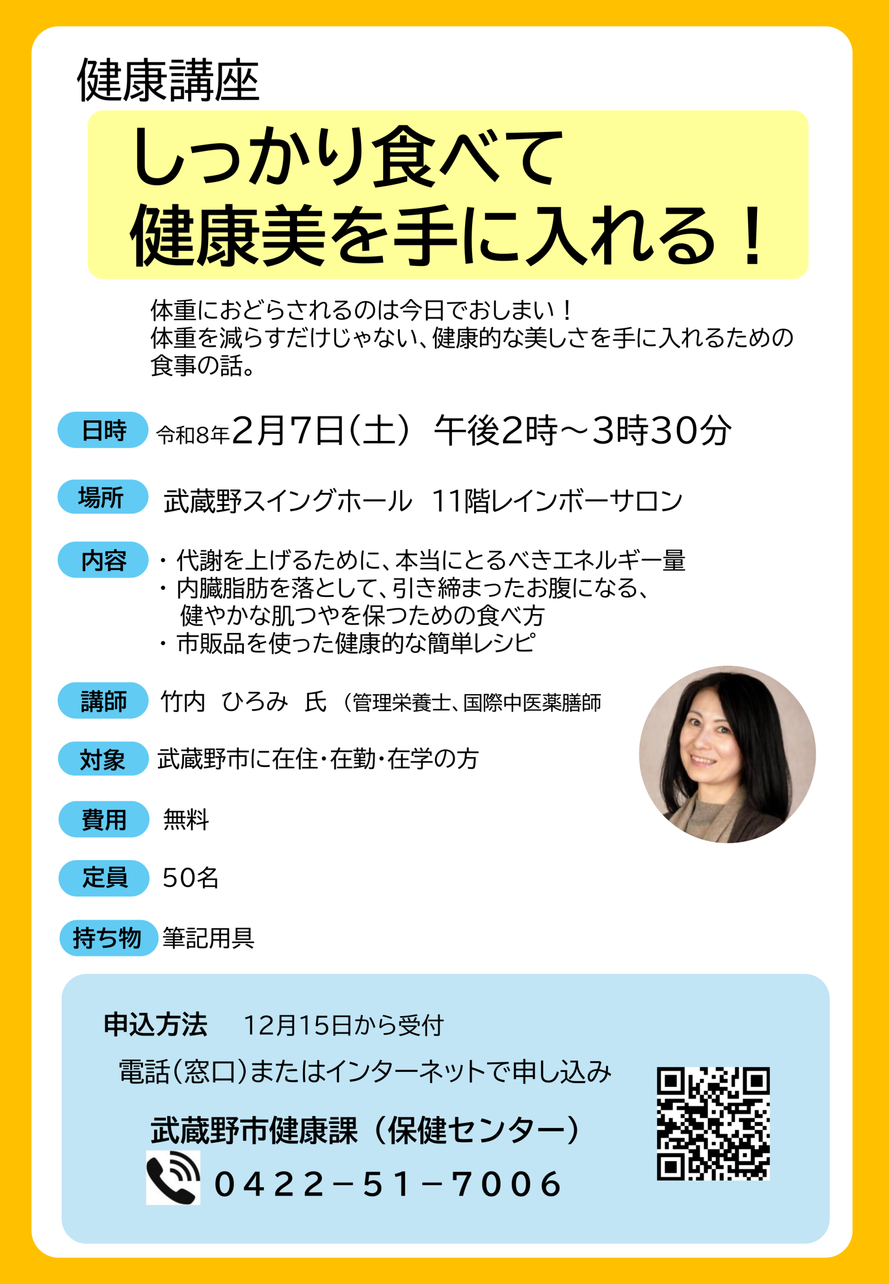 ホーム > お知らせ > お知らせ > 武蔵野市健康課 主催 健康講座 登壇