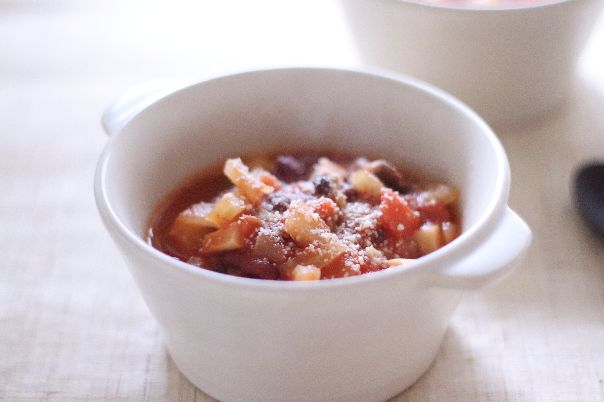③ いろいろ野菜と一緒にトマトベースのスープ